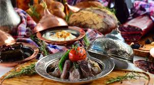 Pilav ve kuzu eti başlıca yemeklerdendi.